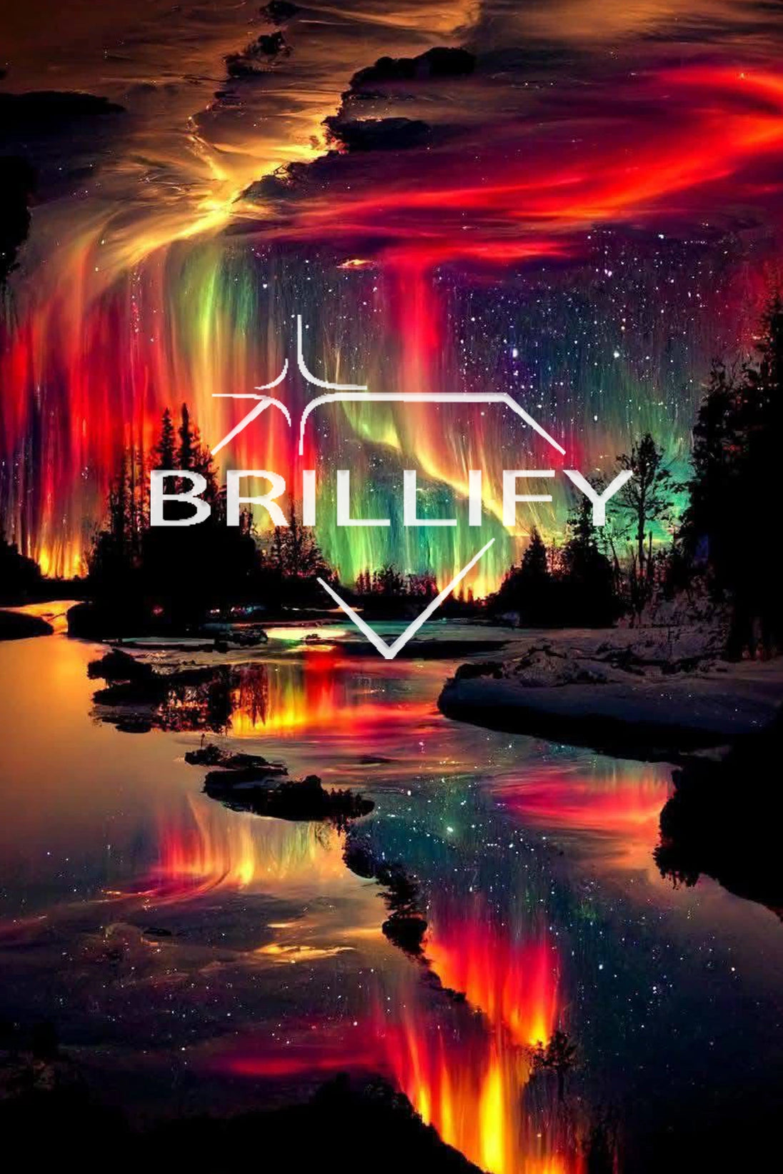 Das Bild zeigt ein prachtvolles Polarlicht, in einem klaren Nachthimmel und schafft eine bezaubernde Atmosphäre in der Schneelandschaft.  Die präzise gedruckte Leinwand von Brillify Diamond Painting ermöglicht es dir, jedes noch so kleine Detail mit den glitzernden Harzsteinen zum Leben zu erwecken.